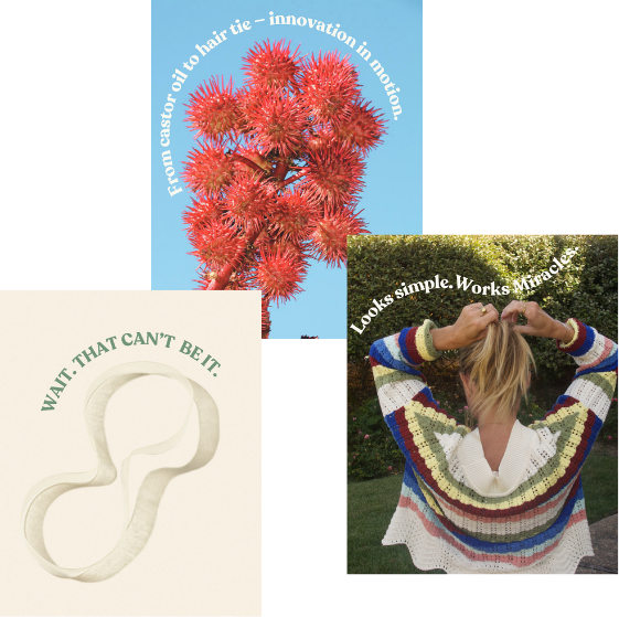 Years later, after building my first company and seeing the world, I realized the problem was still the same — billions of cheap, breakable, plastic elastics tugging and polluting. So I searched for something better and found it: a plant-based material made from castor-bean oil that’s soft, strong, and built to last.